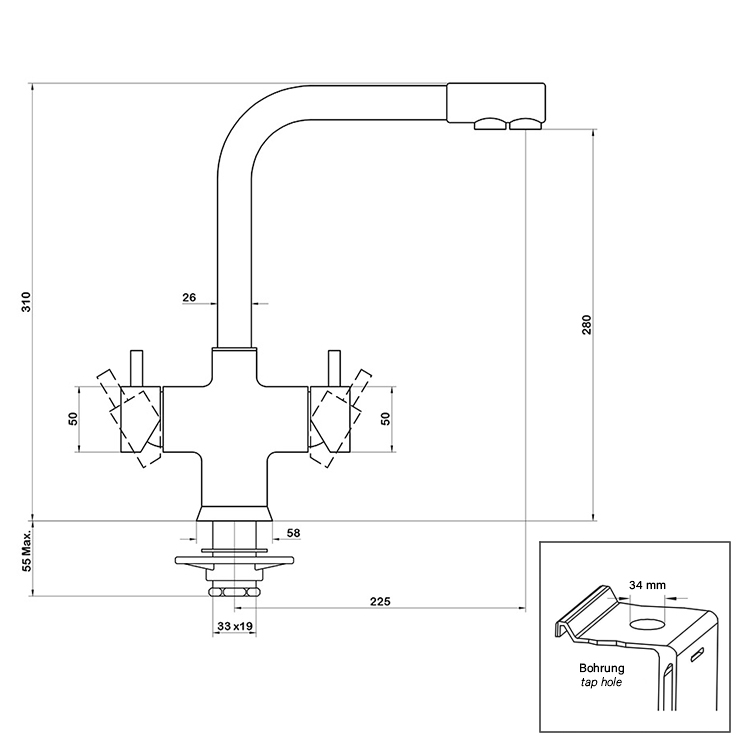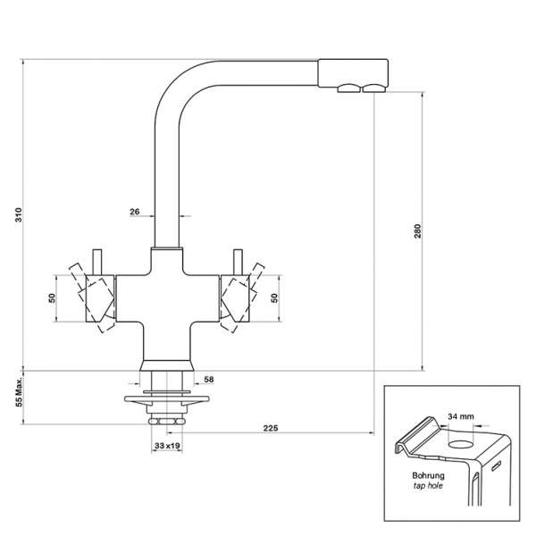 Wasserdruck (Hauswasseranschluss): | Min. 1 bar / max. 5 bar – empfohlen 2 bar |